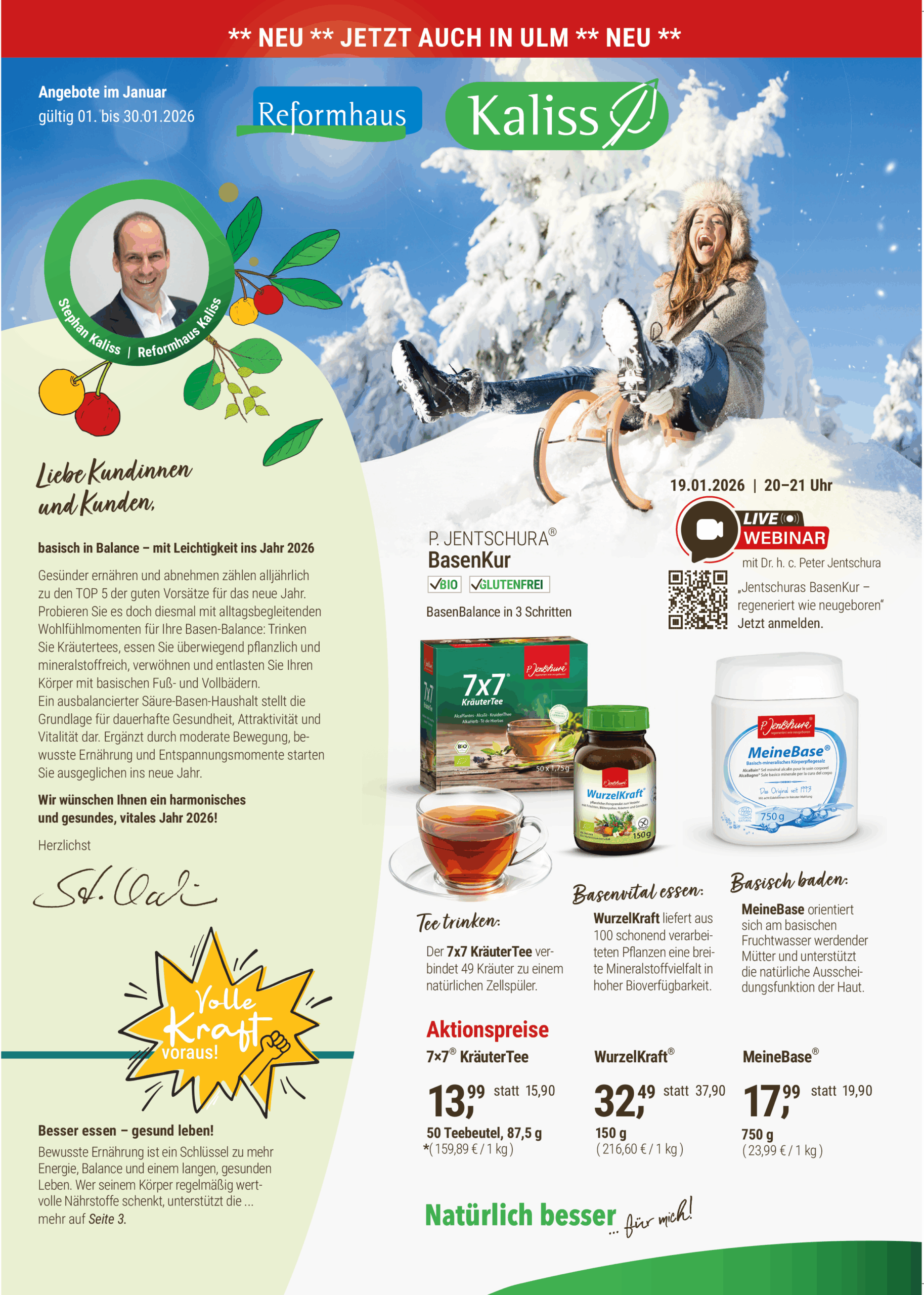Der Januar ist mehr als nur der erste Monat im Kalender. Er steht für Neubeginn, Klarheit und bewusste Entscheidungen. Nach den oft genussreichen Feiertagen wächst bei vielen Menschen der Wunsch, wieder leichter zu essen, dem Körper etwas Gutes zu tun und mit neuer Energie ins Jahr zu starten. Genau hier setzt die Monatsaktion Januar 2026 im Reformhaus Kaliss an – mit dem Fokus auf Basen-Balance, bewusste Ernährung und ganzheitliches Wohlbefinden.