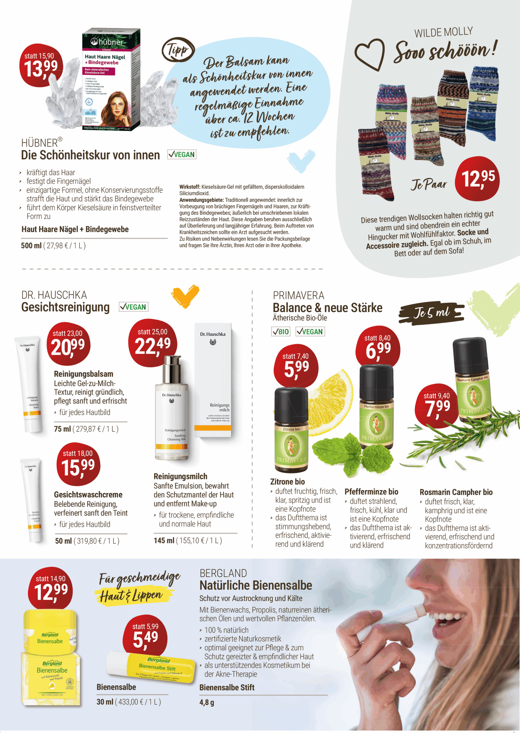 Kälte, trockene Heizungsluft und wenig Sonne stellen im Winter besondere Anforderungen an die Haut. Ergänzend zur inneren Balance bietet die Monatsaktion hochwertige Naturkosmetik von Marken wie Dr. Hauschka, Annemarie Börlind, Primavera oder Bergland. Natürliche Inhaltsstoffe, sanfte Pflege und wohltuende Düfte unterstützen Haut und Sinne gleichermaßen.