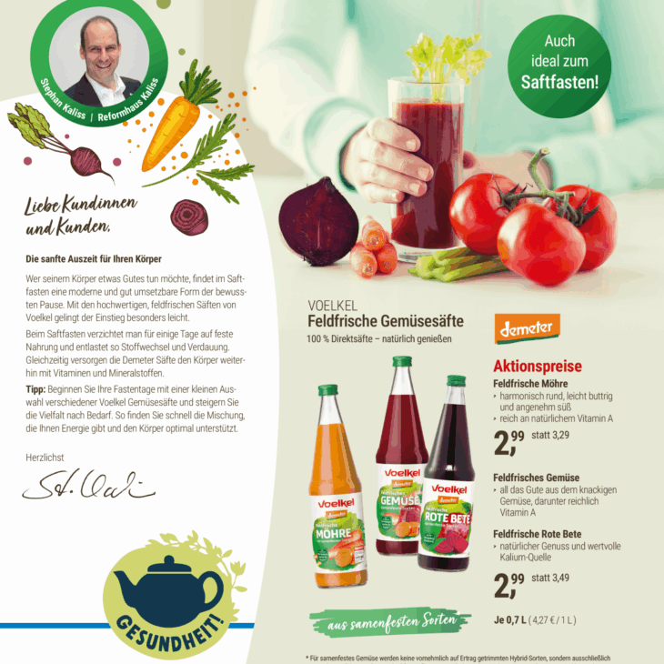Oktober-Specials bei Reformhaus Kaliss – Deine goldene Zeit für Gesundheit & Genuss Der Herbst ist da! Die Tage werden kürzer, die Luft klarer – genau der richtige Moment, um Dir selbst etwas Gutes zu tun. Bei uns im Reformhaus Kaliss findest Du im Oktober viele Aktionen, die Dich stärken, verwöhnen und inspirieren. Natürlich gestärkt durch […]