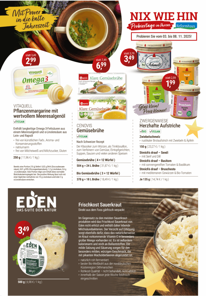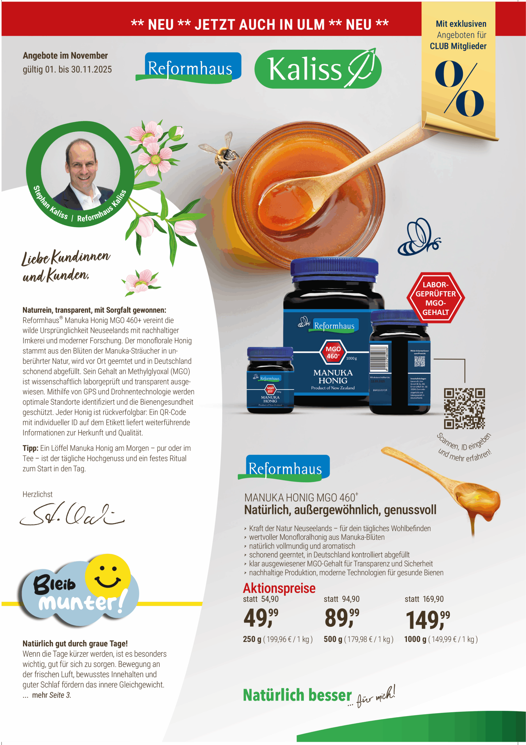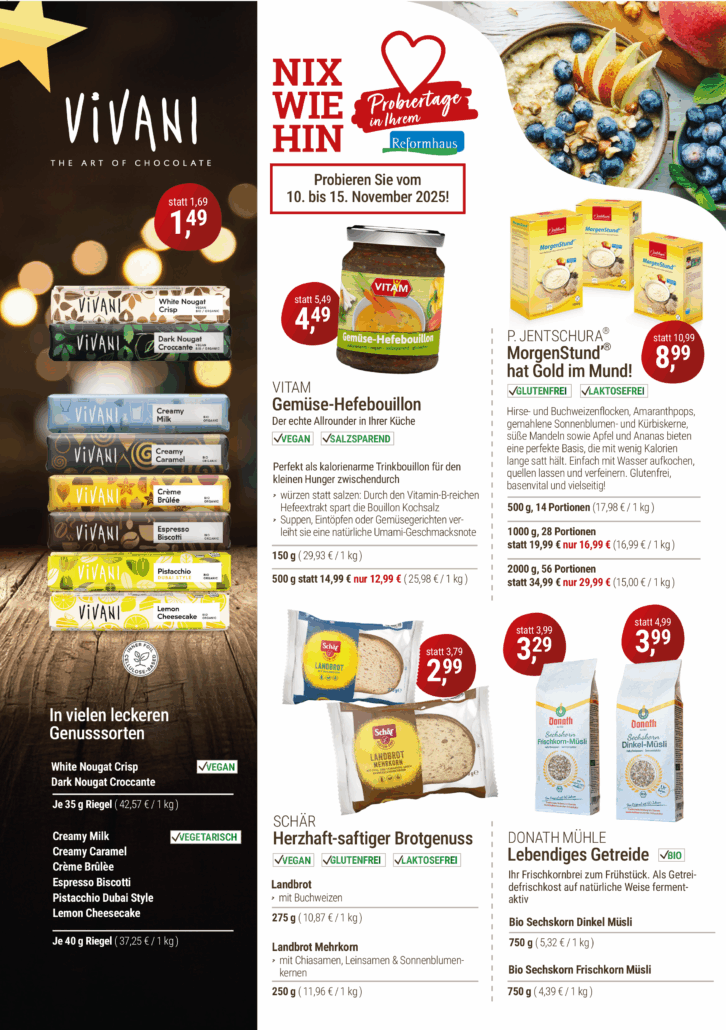 Wenn sich die Sonne rar macht und die Tage kürzer werden, sehnt sich der Körper nach Wärme, Energie und kleinen Glücksmomenten. Genau dafür ist der November im Reformhaus Kaliss gemacht: mit hochwertigen Naturprodukten, stärkenden Aktionen und inspirierenden Ideen für mehr Wohlbefinden in der kühlen Jahreszeit.