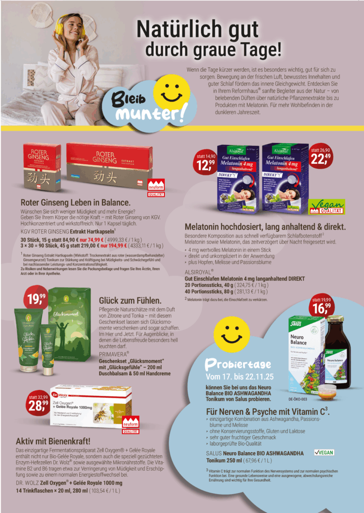 • Natürlich gut durch graue Tage – der November im Reformhaus Kaliss