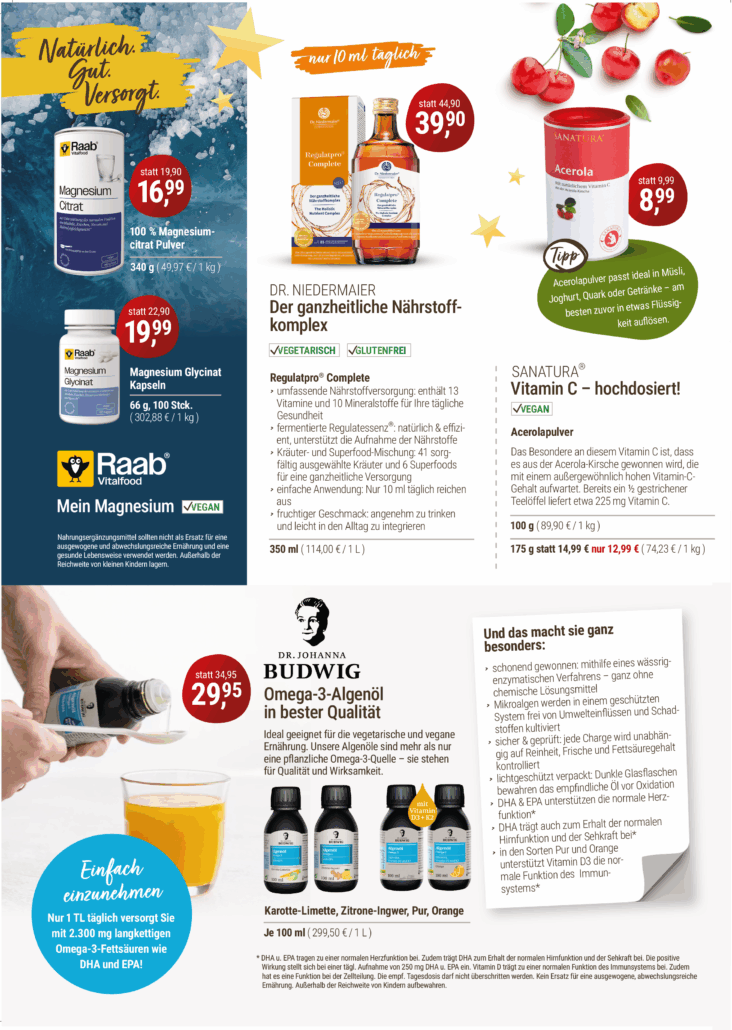 Mit Produkten von Dr. Wolz, Raab Vitalfood und Sanatura bekommst du alles, was Körper und Geist jetzt brauchen: Nährstoffe, die Energie spenden, Vitamine für ein starkes Immunsystem und Ferment-Essenzen für einen gesunden Stoffwechsel. Besonders spannend: das fermentierte Präparat Zell Oxygen® + Gelée Royale, das Bienenkraft mit Mikronährstoffen verbindet – ideal gegen Müdigkeit und Erschöpfung.