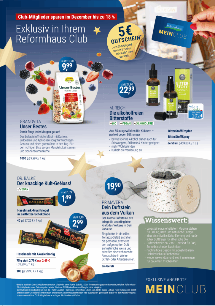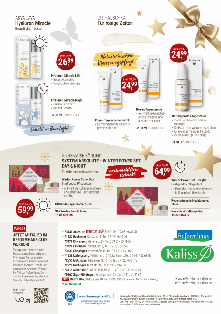 Wer im Reformhaus Kaliss Club ist, darf sich in diesem Zeitraum über exklusive Angebote und besondere Vorteile freuen – ideal, um Adventstage mit kleinen Preisfreuden zu versüßen.
